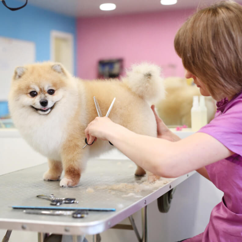Да вы можете присутствовать при стрижке с разрешения грумера при условии, если ваш питомец агрессивен, болен и не может стоять, а также, если он преклонного возраста более 12 лет.